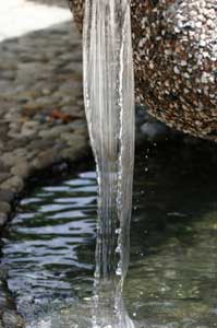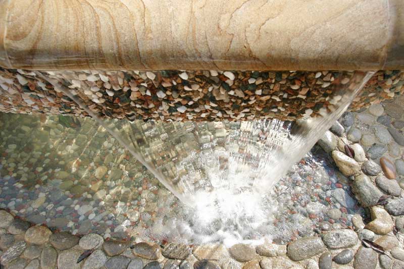 La piccola cascata che si forma al bordo estremo della grande vasca sembra un atto di sereno abbandono. Un dono concesso senza sforzo, senza volontà. Apertura asimmetrica al fine di continuare il ciclo dell’acqua.