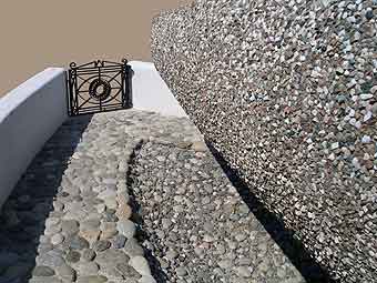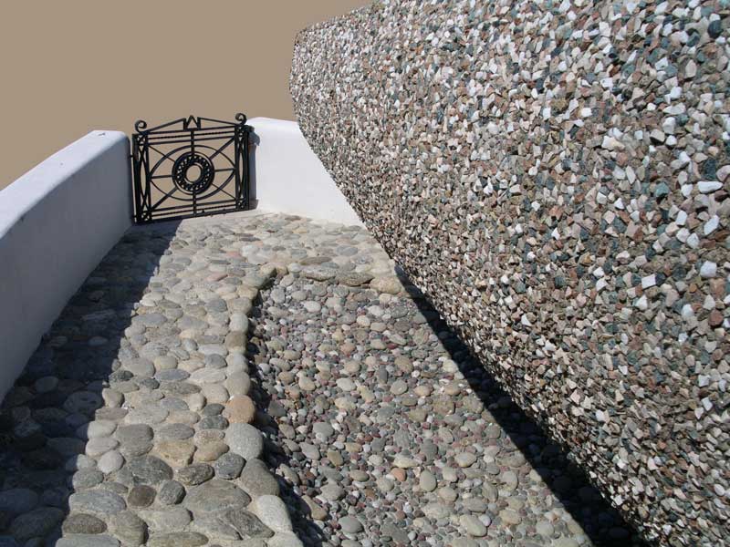 Il terreno è tutto rivestito in ciottolato di pietra.