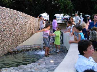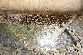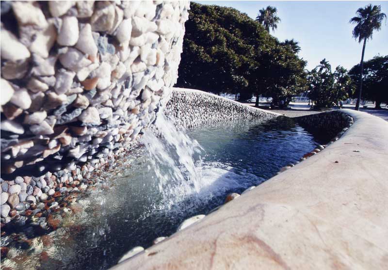 L’acqua, ricchissima d’energia vitale, anima il monumento, come elemento fondamentale della vita sia che scaturisca dalla terra, sia che dal cielo ritorni alla terra sotto forma di pioggia.