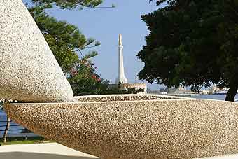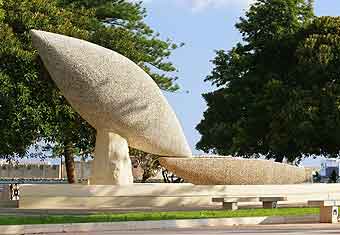 I due elementi affusolati, colpiscono con immediatezza l’occhio dell’osservatore, assolvono alla funzione dell’interazione con l’ambiente circostante, sia esso costituito da deserto, montagne assolate, bosco, mare. La collocazione dell’opera tra gli alberi della passeggiata a mare con alle spalle la città e i monti Peloritani, sembra essere la migliore perché congiunge armoniosamente tra loro il mare, il cielo e la terra, ed instaura tra l’uomo e la natura un dialogo religioso, nel più stretto senso etimologico di unione tra l’uomo e il cielo che non dispiace alla coscienza del cristiano, del mussulmano, del buddista o dell’ateo.