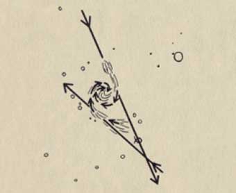 Disegno indicante i due flussi di energia orgonica cosmica, relativo alla foto precedente; immagini tratte dal libro “Superimposizione cosmica” di W. Reich