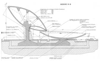 Pure per lo sferoide si è iniziata la costruzione rilevando gli elementi base per il disegno delle varie sezioni che sono state trattate al computer. Si è proceduto alle stesse fasi esecutive adoperate per la costruzione della vasca ma queste si sono rese assai più complesse per la forma, le dimensioni e la posizione della struttura dello sferoide.