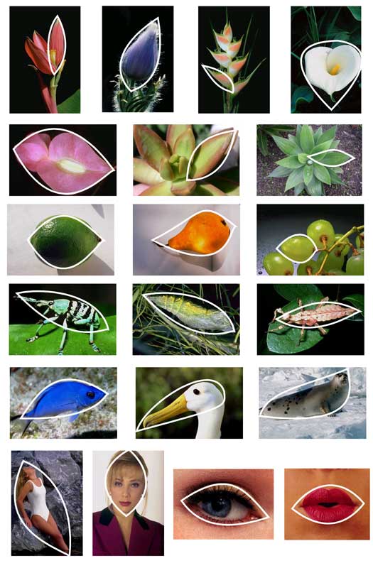 Inoltre, prima di analizzare la dimensione ritmica che assume la ripetizione del modulo elissoidale leggiamo ancora nello stesso paragrafo, dedicato a la dinamica dell’obliquità: “Secondo Lomazzo [pittore e scrittore del Cinquecento], non esiste forma più atta a descrivere tale movimento di quella della fiamma, del fuoco, che per Aristotele e altri filosofi è elemento più attivo di tutti gli altri […] Essa infatti possiede un cono o punta aguzza con cui sembra dividere l’aria così da poter ascendere alla sua propria sfera. Lomazzo conclude dicendo che una figura umana che abbia tale forma sarà la più riuscita. […] La dinamica aumenta col variare del ritmo del gradiente […] Il movimento è ancora più libero quando in foglie o vasi si verificano dei cambiamenti dall’espansione alla contrazione e viceversa (Se coprite la figura con un foglio di carta e la scoprite lentamente in senso verticale potrete sperimentare meglio la forza del rigonfiarsi e del convergere).” Il ritmo binario del respiro è una perfetta dinamica di contrazione e distensione, il ritmo binario del cuore è dato da compressione e rilassamento… lo stomaco durante la digestione ne segue il modello… l’Universo in espansione per lo stesso motivo dovrà contrarsi…